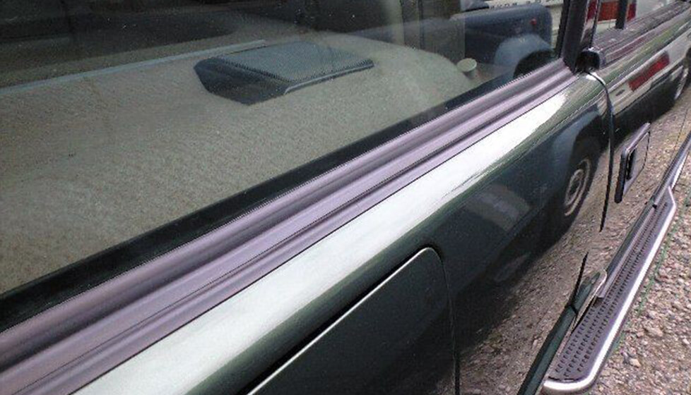 写真のクラシックレンジローバーでは純正に準じた張替を行いました。